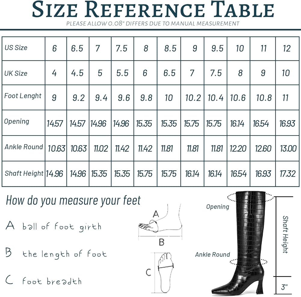 【كعب متوهج أنيق】يتميز بكعب متوسط مريح مقاس 7.62 سم مع تصميم أنيق متوهج، توفر هذه الأحذية الطويلة حتى الركبة الثبات والرفع العصري.