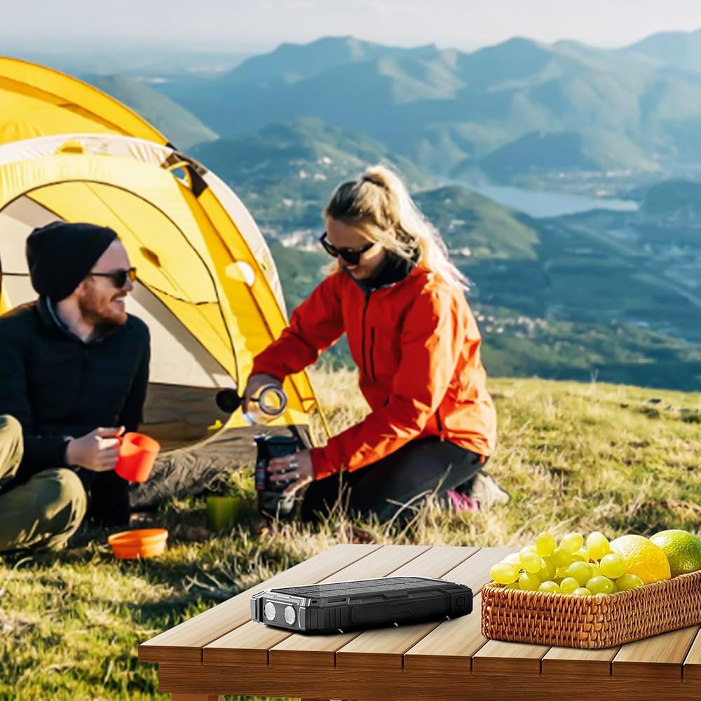🔋【تصميم قوي 】 حزمة البطارية الخارجية مصنوعة من مواد ABS وPC فائقة القوة، ومقاومة للماء IP65، والصدمات، والغبار، وتأتي أيضًا مع وظيفة مصباح يدوي. انها مناسبة جدا للاستخدام في الهواء الطلق.