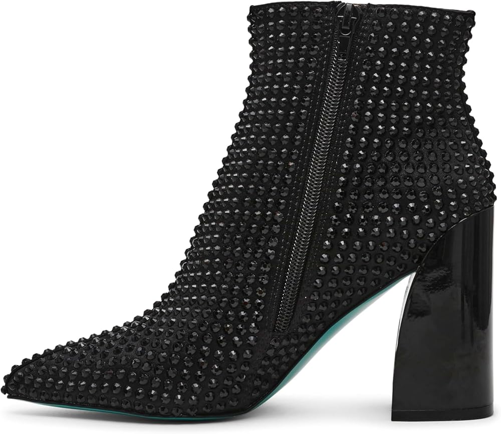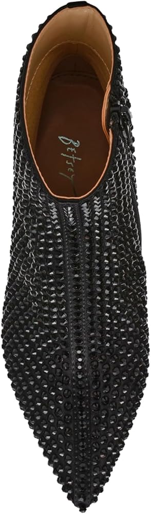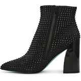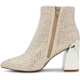 Add some pizzazz to your shoe collection with COLBY's rhinestone bootie! These flashy silver rhinestones are perfectly complemented by a metallic block heel, giving off a stylishly chic vibe.