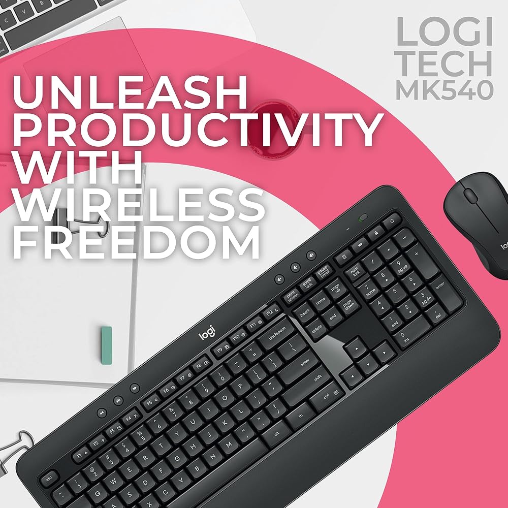 لا مزيد من الأسلاك: استمتع بالحرية اللاسلكية مع Logitech MK540 Advanced. يبلغ نطاقها 33 قدمًا. قل وداعًا للمكاتب المزدحمة وأهلاً بالمرونة المعززة. يزيل إزعاج الحبال المتشابكة في المكاتب المزدحمة وأماكن العمل المنزلية