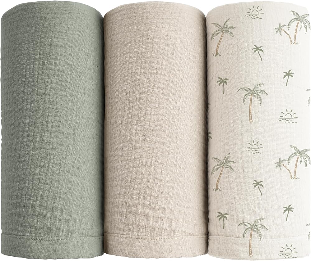Konssy Muslin Swaddle Blankets for Baby Girls Boys 3 Pack, Receiving Blanket Large 47 x 47 inches, Soft Breathable Muslin Baby Blanket for Unisex Newborn (Tree)