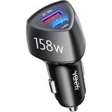 شاحن سيارة سريع USB C بقدرة 158 واط من SUNDA، محول شاحن سيارة بمنفذين من النوع C، شحن سريع PD3.1 PD140W/QC18W شاحن هاتف لـ iPhone15/14Pro/MacBook/iPad/Laptop/SamsungS24، شاحن USB ولاعة السجائر