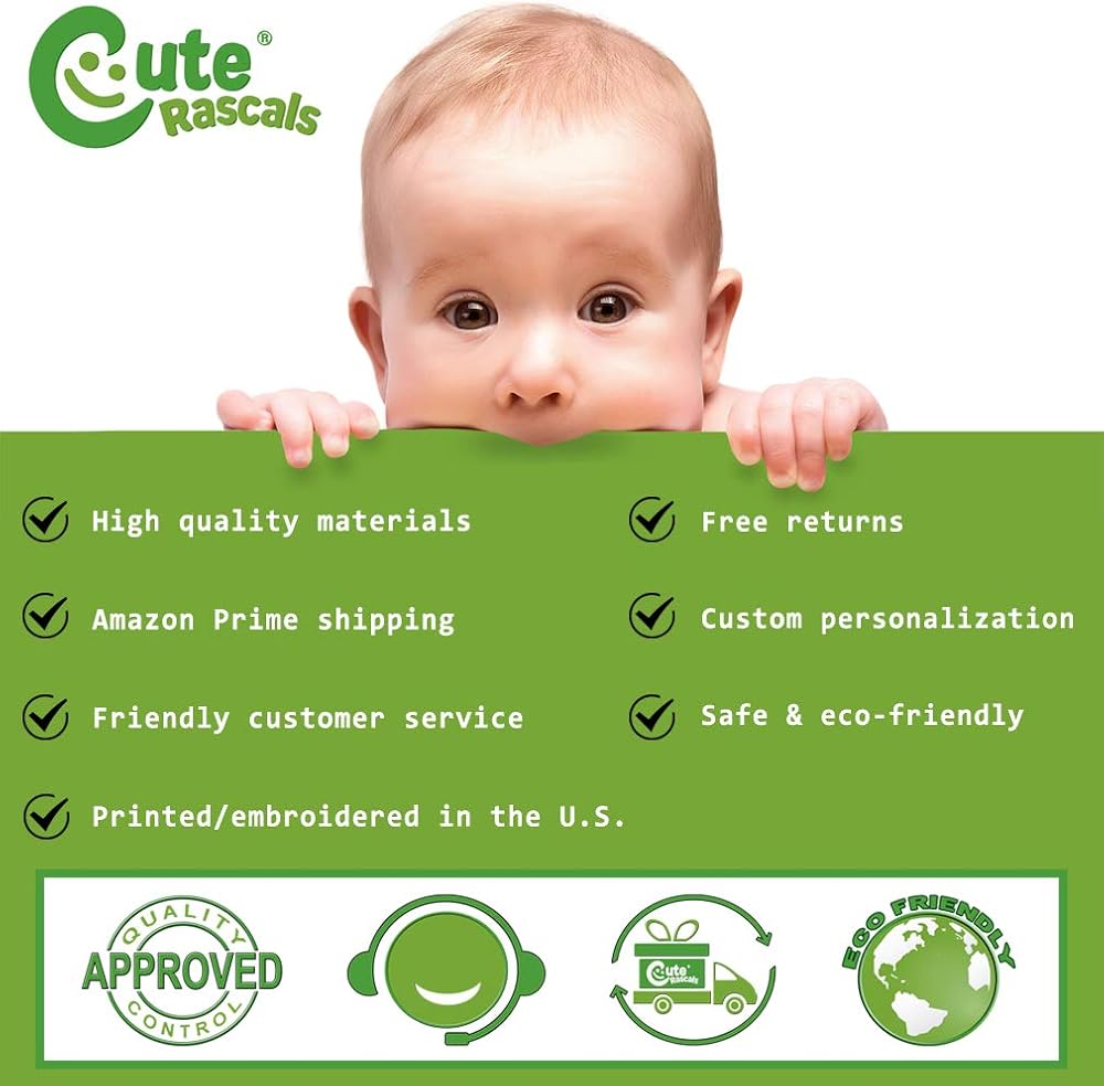 Our designs are professionally printed with state-of-the-art equipment guaranteed not to fade or crack, with no bleed through inside to protect baby's soft skin! Our prints will continue to feel and look great even after many washes for many years. We have more than 12 years of experience in the printing industry to offer you stunning detail and rich lifelike colors. All prints are carefully made in our lab in Tampa, Florida.