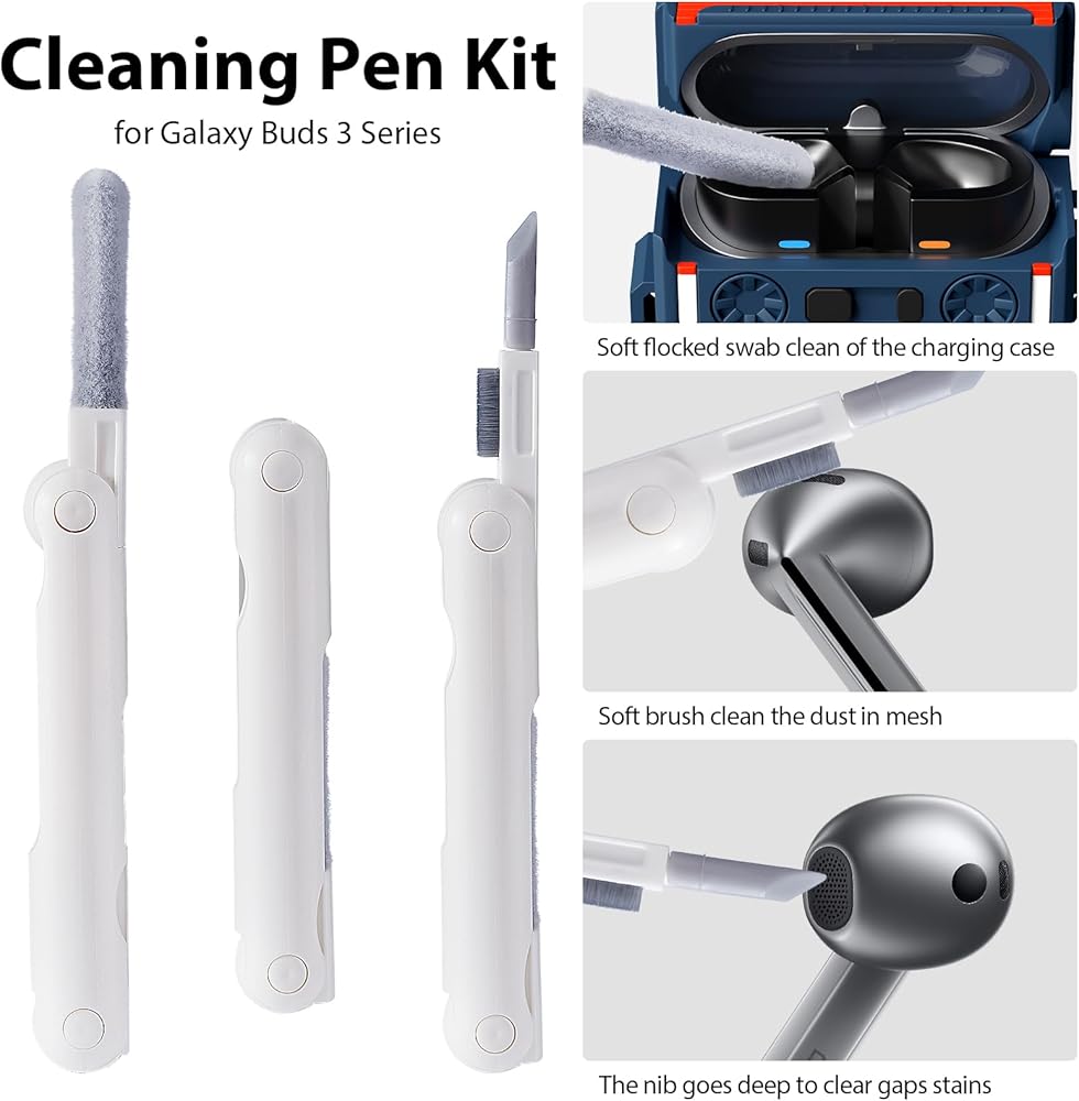 ✨【قلم تنظيف متعدد الوظائف وحبل محمول】: قلم تنظيف قابل للطي 3 في 1، يمكن لطرف السيليكون تنظيف الغبار والأوساخ من فتحات سماعات الأذن، ويمكن للفرشاة الناعمة تنظيف سطح شبكة سماعة الأذن، ويتم استخدام فرشاة إسفنجية متدفقة للتنظيف. حافظة الشحن والأوساخ التي لا يمكنك الوصول إليها، تحافظ دائمًا على نظافة حافظة Samsung galaxy Buds pro 3 وسماعات الأذن. تأتي مع حبل مجدول قابل للتعديل، حتى تتمكن من حملها بسهولة