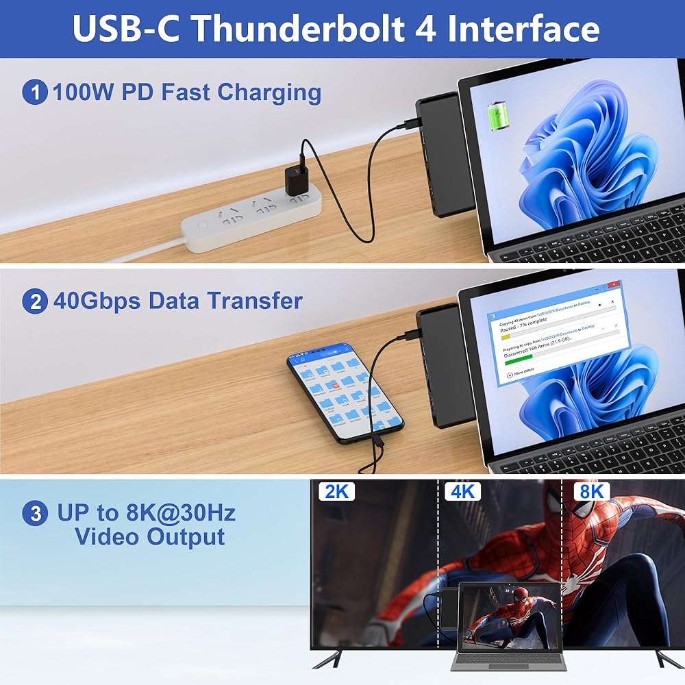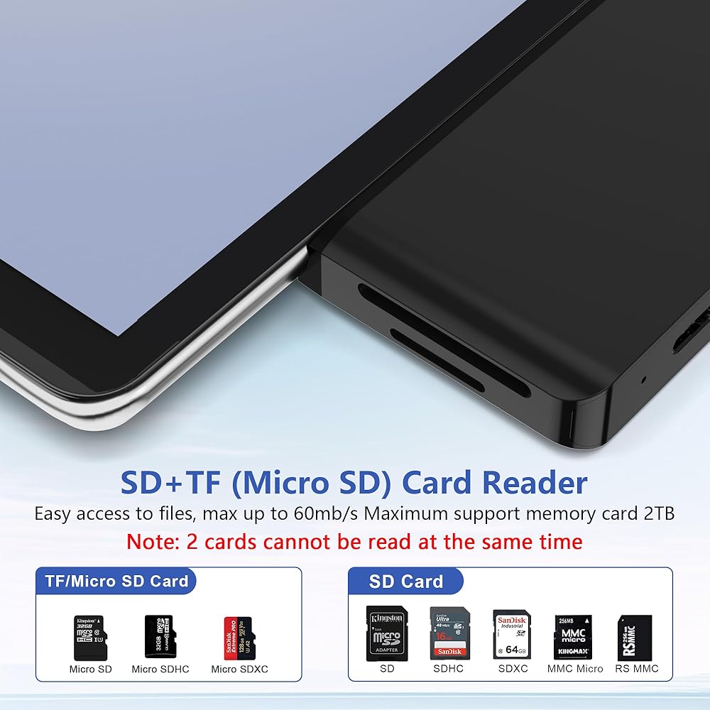 [نقل بيانات عالي السرعة]: يدعم منفذ USB C Thunderbolt 4 نقل البيانات بسرعة 40 جيجابت في الثانية ويدعم منفذ USB 3.0 معدل نقل يصل إلى 5 جيجابت في الثانية؛ مثالية للوحات المفاتيح والفئران ومحركات الأقراص المحمولة. تعمل فتحات SD وTF (Micro SD) المدمجة على تسهيل الوصول إلى الملفات بسرعات مذهلة تصل إلى 480 ميجابت في الثانية. بالإضافة إلى ذلك، يسهل منفذ الصوت والميكروفون 2 في 1 الاستماع أو التحدث.