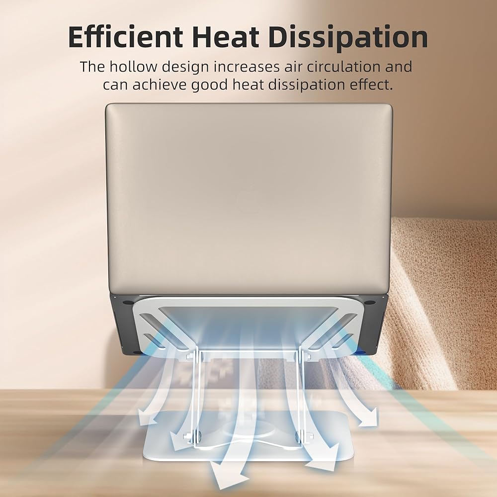 تهوية فعالة: يتميز حامل الكمبيوتر المحمول المريح بتصميم مجوف، مما يزيد من التهوية، ويمنع الكمبيوتر المحمول الخاص بك من السخونة الزائدة ويساعده على العمل بكفاءة.