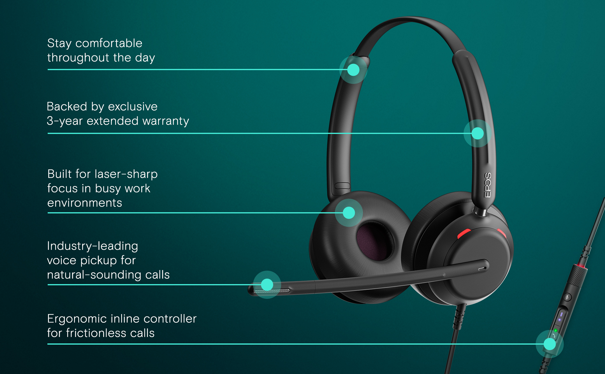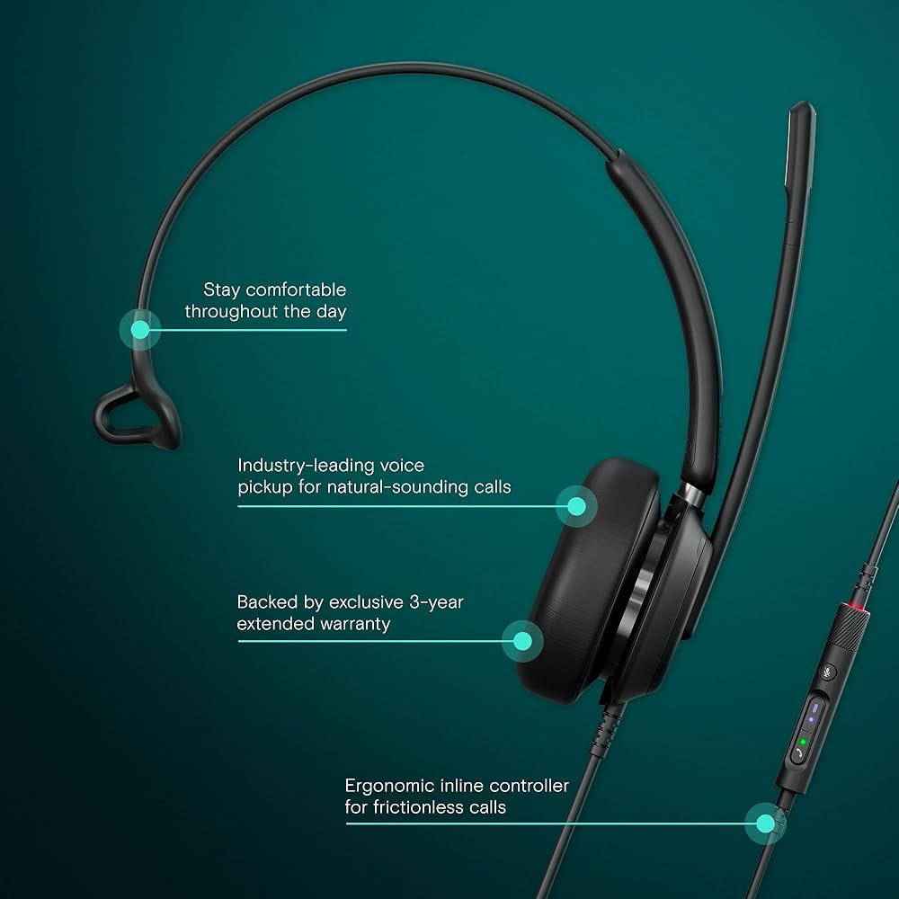 ALL-DAY WEAR COMFORT – Lightweight construction with soft leatherette ear pads, crafted for extended wear in any office setting