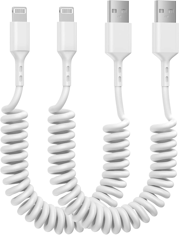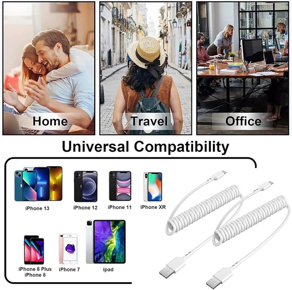 2 pack Coiled Lightning cable set is designed for safe and fast charging , an ideal buddy for office, game, daily life, outdoor, long distance journey & business trip.