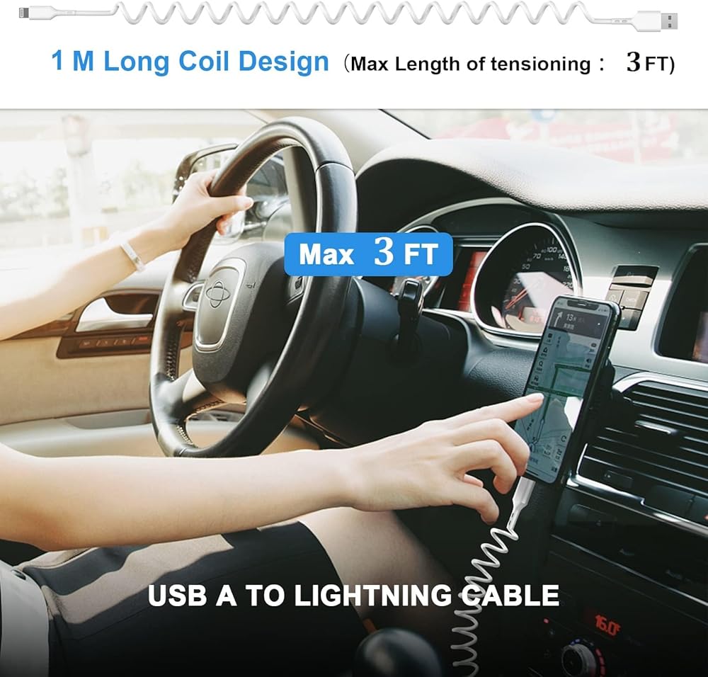 • 【Efficient Quick Coiled Charging】Coiled iPhone charger cord can support USB output. Equipped with MFi Certified C94 chip, can perfectly adapt to iPhone 13/12 series, iPad Pro,usb car charger and Airpods Pro, which has 3X faster than most normal ones. It can fast charge your iPhone 13 Pro/iPhone 12/iPhone 13 Mini/iPhone 12 Mini/iPhone 11/iPhone 11Pro/iPhone SE 2020/12 Pro Max/11 Pro Max/XS Max/XR/8/8 Plus/7/7 Plus/6S/6S Plus/SE/iPad and More.
