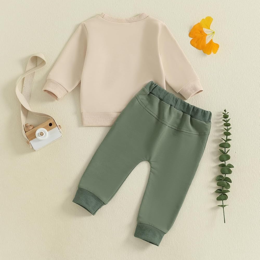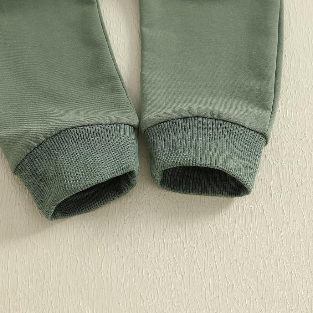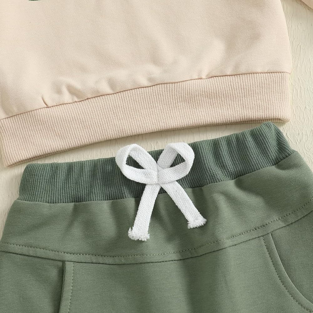 ميزات ملابس الأطفال الرضع اللطيفة: مجموعة ملابس رياضية للأولاد من قطعتين، رقبة دائرية وأكمام طويلة، بلوفر علوي مع حروف مطرزة، سراويل الركض الطويلة، لون ثابت مع جيبين جانبيين وخصر برباط، تجعل ملابس الأولاد مجموعة رائعة وعصرية