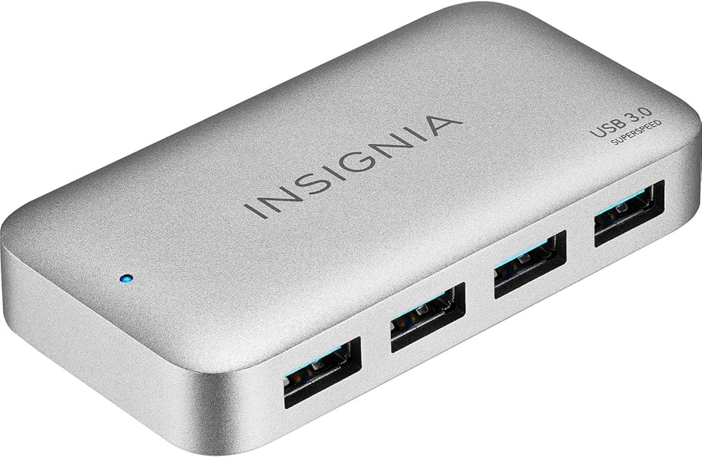 موزع USB 3.0 ذو 4 منافذ من Insignia بطول 5 أقدام. كابل إمداد الطاقة، موسع موزع USB لأجهزة الكمبيوتر المحمول، إكس بوكس، محرك فلاش، محرك الأقراص الصلبة، وحدة التحكم، الطابعة، الكاميرا، لوحة المفاتيح، الماوس، ماك بوك، السطح، الكمبيوتر الشخصي، رمادي فضي