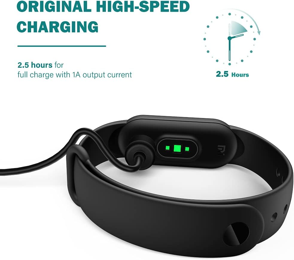 【توافق واسع】متوافق مع جهاز تتبع اللياقة البدنية Xiaomi Mi Band 5 6 7 وAmazfit Band 5. يرجى ملاحظة: يرجى عدم استخدام محول الشحن السريع. إذا قمت بتوصيله بالمحول، يجب ألا يتجاوز التيار الكهربائي 1 أمبير ولا يتجاوز الجهد 5 فولت.