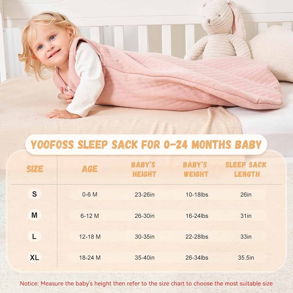 السلامة تأتي أولاً - كيس نوم الأطفال من Yoofoss معتمد لتلبية متطلبات لجنة سلامة المنتجات الاستهلاكية (CPSC)، وهو مخصص لضمان سلامة طفلك وراحته. تم تحديد حجم خط العنق بعناية وتضمن العديد من التجارب ملاءمة آمنة ومريحة. والفضفاضة حول الساقين للسماح بتطور الورك الطبيعي.