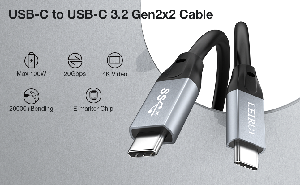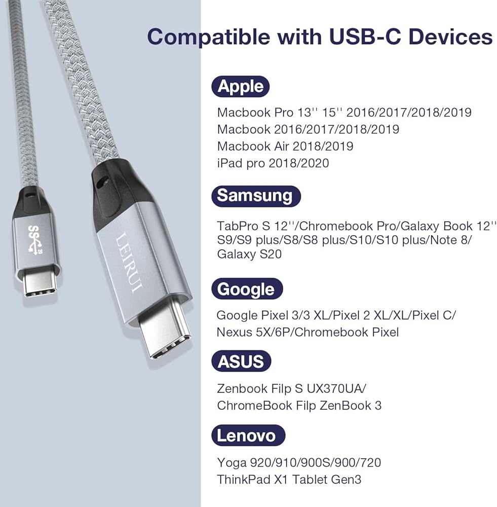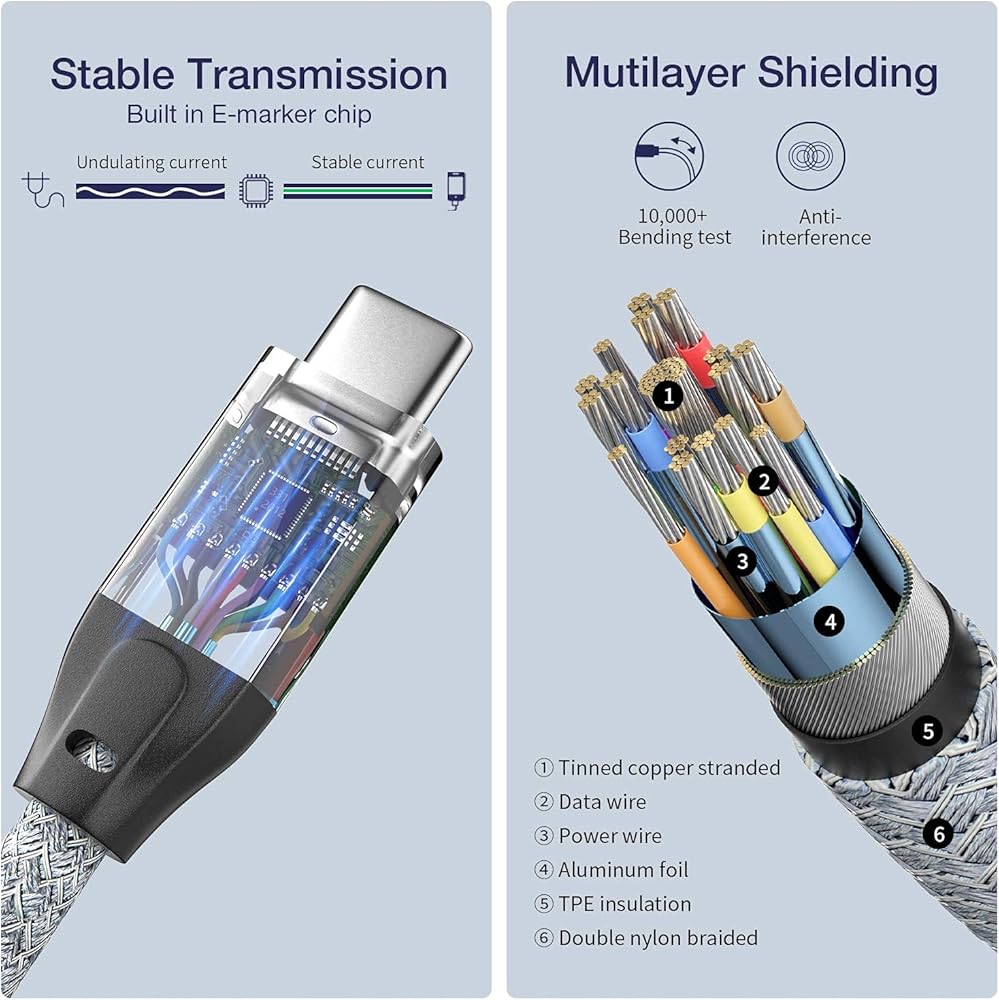 【كابل نقل بيانات 20 جيجابايت في الثانية】يجمع كابل USB C 3 Gen 2x2 بين نقل البيانات بسرعة 1600 ميجابايت/ثانية، ونقل ملفات 1 جيجابايت في 3 ثوانٍ. إنه كابل نقل بيانات عالي السرعة USB C حقًا.