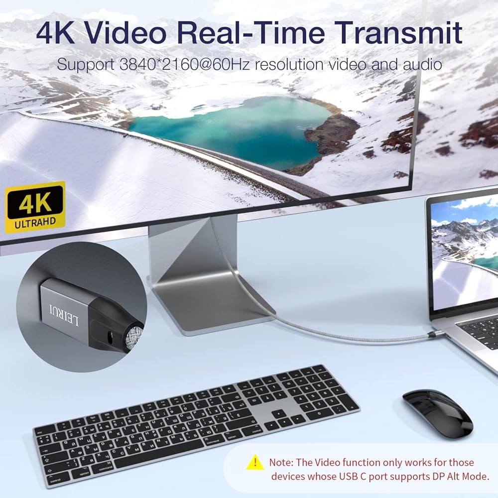 【شاشة 4K HD 】 كابل USB من النوع c يربط الكمبيوتر المحمول الخاص بك بشاشة خارجية لمرآة أو تمديد شاشتك حتى 5K/4K@60 هرتز أو 2K@120 هرتز. تعمل شريحة العلامة الإلكترونية المدمجة على تقليل فقدان الإشارة وتحمي جهازك أثناء نقل البيانات والشحن السريع.