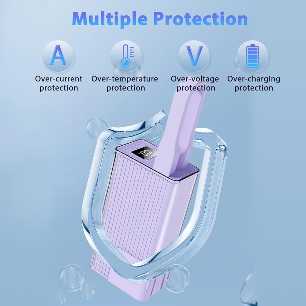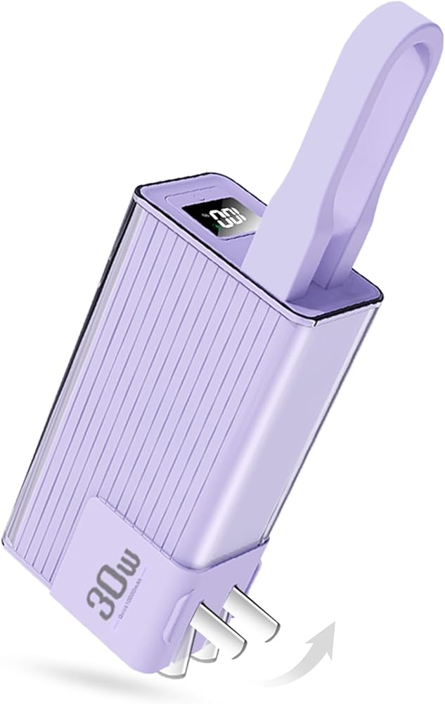 شاحن محمول Miady PD 30 واط مع قابس حائط قابل للطي، بنك طاقة سريع الشحن 10000 مللي أمبير في الساعة مع كابل USB-C وشاشة LED حزمة بطارية صغيرة متوافقة مع iPhone 16/15/14 Samsung iPad وما إلى ذلك (أرجواني)