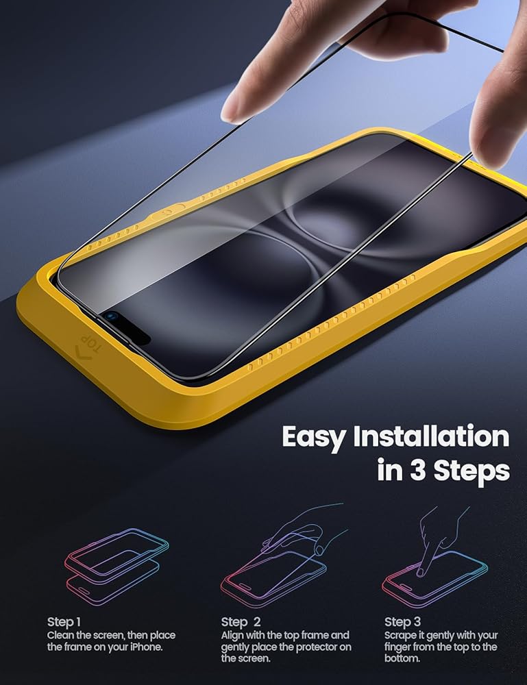 【سهلة التركيب】 إطار المحاذاة وتقنية الامتصاص التلقائي الكهروستاتيكية الفريدة تجعل التثبيت قطعة من الكعكة، مما يضمن أنه سريع وسهل وخالي من الفقاعات. من السهل تثبيت واقي الشاشة الزجاجي لجهاز iPhone 16 plus حتى إذا كنت تستخدم تطبيق فيلم الهاتف لأول مرة. (يُرجى قراءة دليل المستخدم والفيديو التعليمي للتثبيت بعناية قبل التثبيت.)