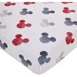 Add some Disney fun to your little ones nursery with this Mickey Mouse Fitted Crib Sheet. This crib sheet is featured in a watercolor style with Mickey Mouse iconic ears in shades of red, black, gray and white. Includes full elastic edges for a safe and snug fit. Made of cozy soft fabrics and measures 28" x 52" x 8". Fits a standard size crib/toddler mattress. Machine washable for easy care. The perfect touch for any Disney nursery!