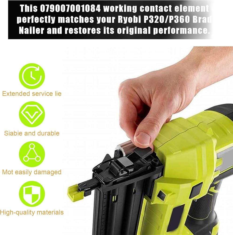 استبدال احترافي: يعد عنصر الاتصال العامل غير OEM 079007001084 توافقًا مثاليًا لأدوات OEM، مما يضمن تطابقًا مثاليًا مع جهاز Ryobi P320/ P360 Brad Nailer واستعادة أدائه الأصلي.