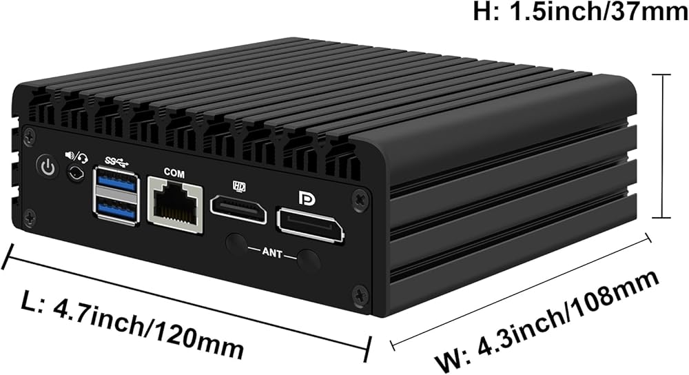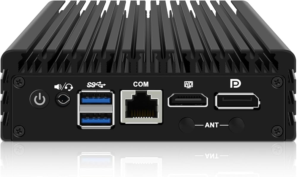Rich I/O & Dual Display--This fanless mini pc has 1x HDMI and 1x DP to support dual display. Besides, it also has 2x USB 3.0 Ports, 1x RJ45 COM Port