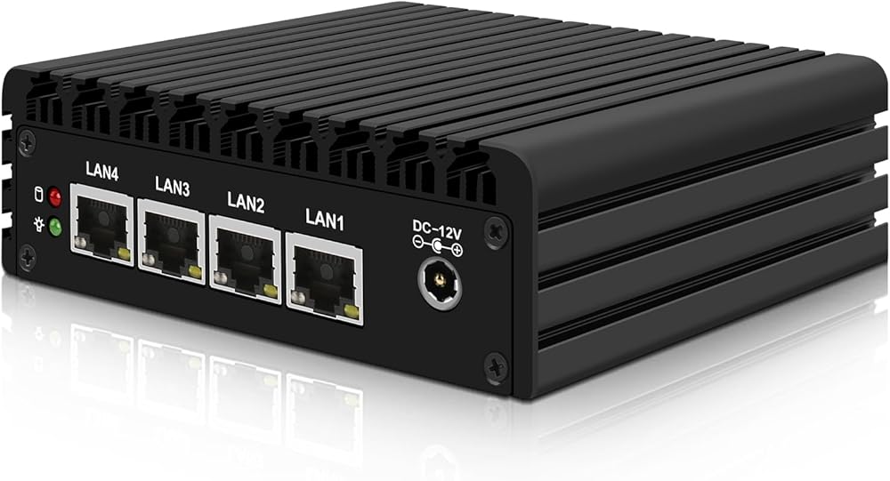 Firewall Appliance 4 Ports, 2.5G LAN Fanless Mini PC J3710 Quad Core, Support AES-NI, 8GB DDR3 RAM 128GB SSD Hardware Firewall Router Computer for Network Security/Edge Computing, etc.