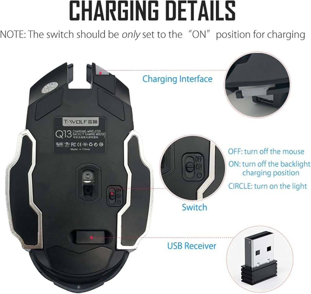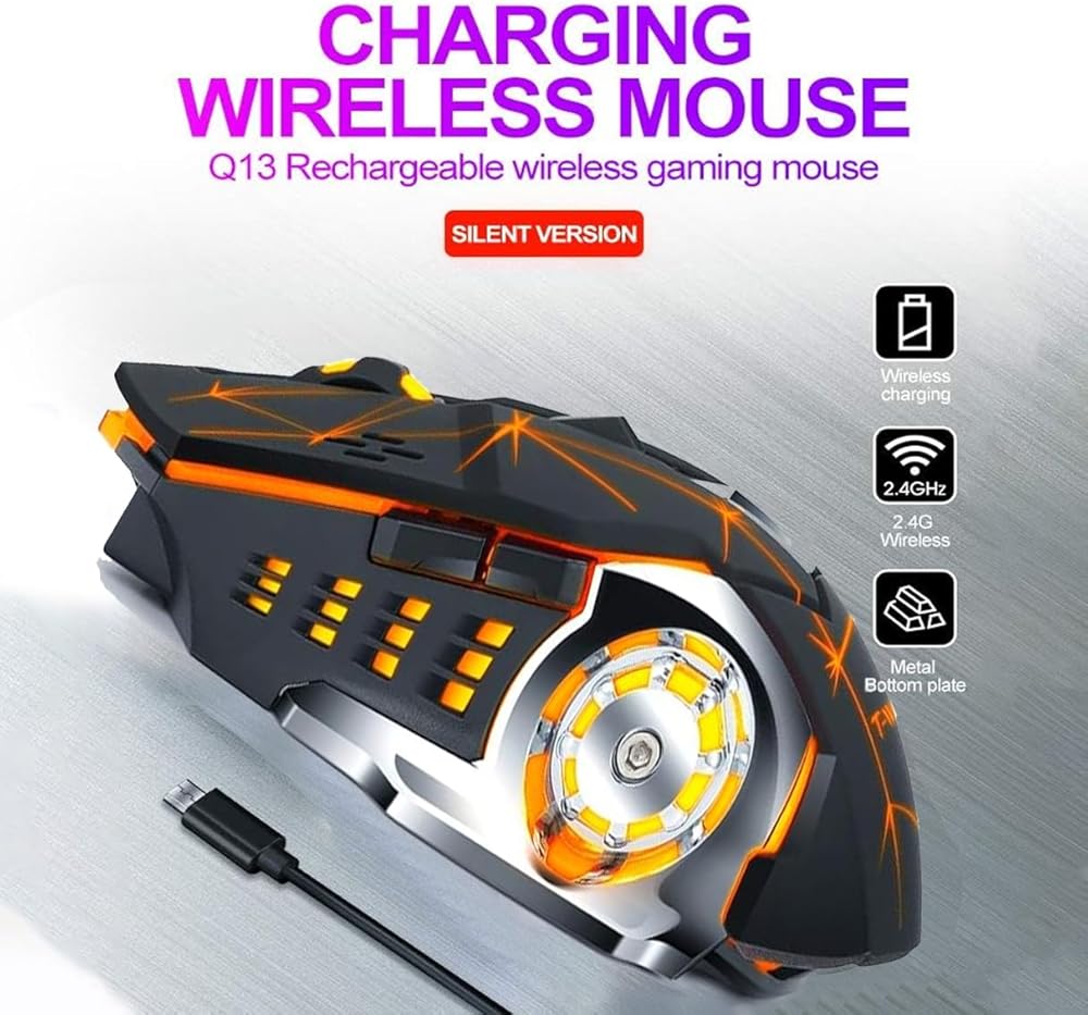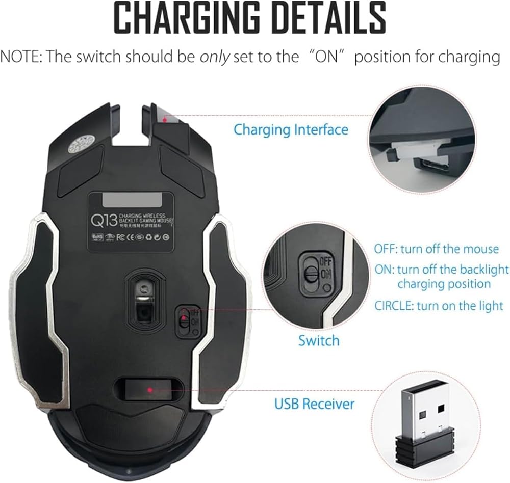 🔇 تصميم فريد من نوعه للنقر الصامت: ماوس Arrow Dancer Q13 اللاسلكي القابل لإعادة الشحن: النقر الصامت ورقاقة توفير الطاقة المتقدمة تجعل ماوس الألعاب هذا مثاليًا لبيئات العمل الهادئة.