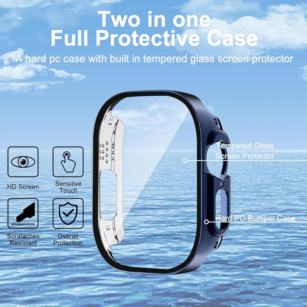 Compatible Model: compatible with apple watch ultra 2 /ultra 49mm. You will be receiving a 2 pack apple watch ultra 2 case with built-in tempered glass screen protector.