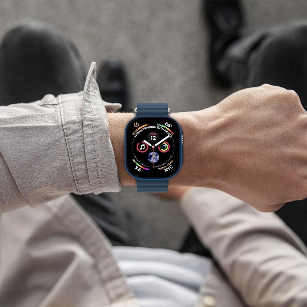 حافظة Smileing مكونة من قطعتين واقي شاشة مدمج من الزجاج المقوى متوافق مع Apple Watch Ultra 2 /Ultra 49mm، حافظة صلبة من البولي كربونات غطاء حماية عام - 1 أزرق + 1 شفاف