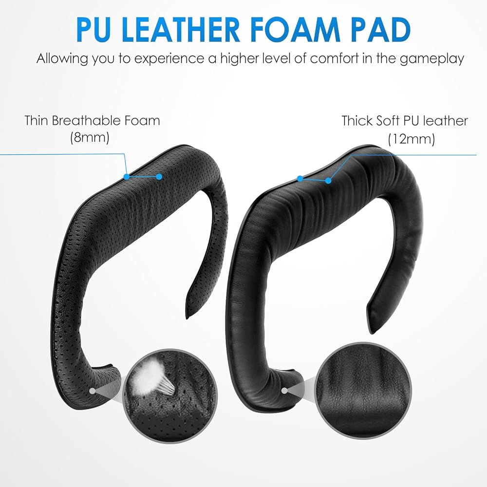 【توزيع أفضل للوزن】يساعد الحزام العلوي والوسادة الخلفية على توزيع وزن سماعة الرأس بشكل أفضل ويوفر ملاءمة أكثر ثباتًا، مما يساعد على وضع المزيد من الوزن على الجزء الخلفي من الرأس وتخفيف الوزن من عظام الخد. ولحسن الحظ، يتم ربط الوسادة المصنوعة من جلد البولي يوريثان بالظهر البلاستيكي عبر شريط فيلكرو، بحيث يمكنك إزالتها وتنظيفها بسهولة.