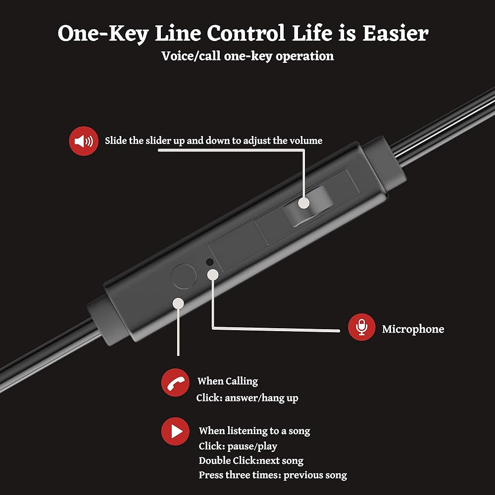 ميكروفون مزدوج والتحكم في مستوى الصوت - زر ميكروفون متوافق مع هواتف Android، مما يتيح التشغيل/الإيقاف المؤقت، والرد على المكالمات وتعليقها وغيرها من الوظائف، قد لا تنطبق بعض هذه الوظائف على أجهزة iPhone وiPad وiPods وما إلى ذلك. قد تختلف الوظائف الفعلية باختلاف الأجهزة
