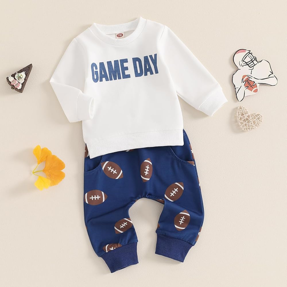 【تصميم لطيف】مجموعة ملابس الشتاء للأولاد الصغار، مجموعة ملابس كرة القدم للرضع، ملابس كرة القدم للرضع، بدلات كرة القدم للأطفال الصغار عصرية، تتميز برقبة دائرية وأكمام طويلة تجعل الأطفال يبدون مفعمين بالحيوية. البنطلون الطويل بجيبين ورباط، يتناسب مع الجزء العلوي.