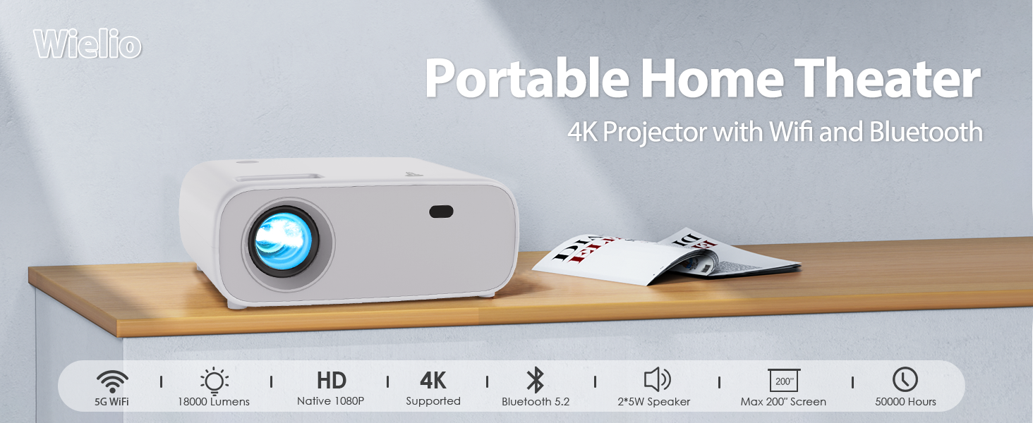 مكبر صوت هاي فاي مدمج: يحتوي جهاز العرض الخاص بنا المزود بواي فاي وبلوتوث على مكبري صوت هاي فاي مدمجين. استمتع بصوت محسّن مع مكبرات الصوت المدمجة التي توفر صوتًا واضحًا وغامرًا، مما يلغي الحاجة إلى مكبرات صوت خارجية إضافية للاستخدام العادي. سيجلب لك جهاز عرض الأفلام هذا وليمة بصرية رائعة.