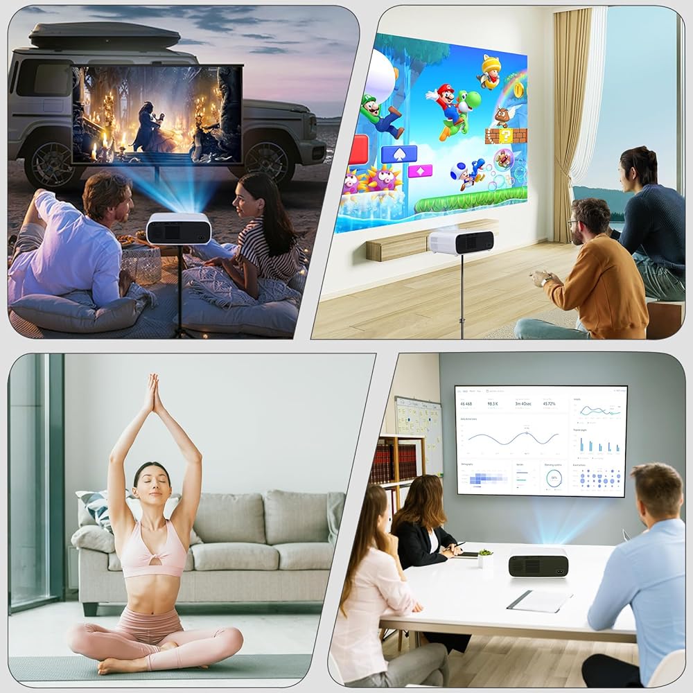 جهاز عرض مع اتصال متعدد الاستخدامات: يمكن لجهاز عرض الفيديو الاتصال بسهولة بمجموعة متنوعة من الأجهزة، بما في ذلك IOS، وهواتف Android، وحتى HDMI، وUSB، والكمبيوتر الشخصي، والكمبيوتر المحمول، وعصا التلفزيون من خلال التوصيلات السلكية واللاسلكية. هذا التنوع يجعله الخيار الأمثل للاعبين وعشاق الأفلام وعروض الأعمال.