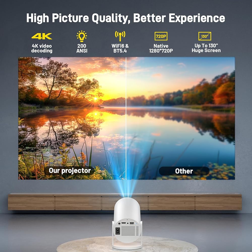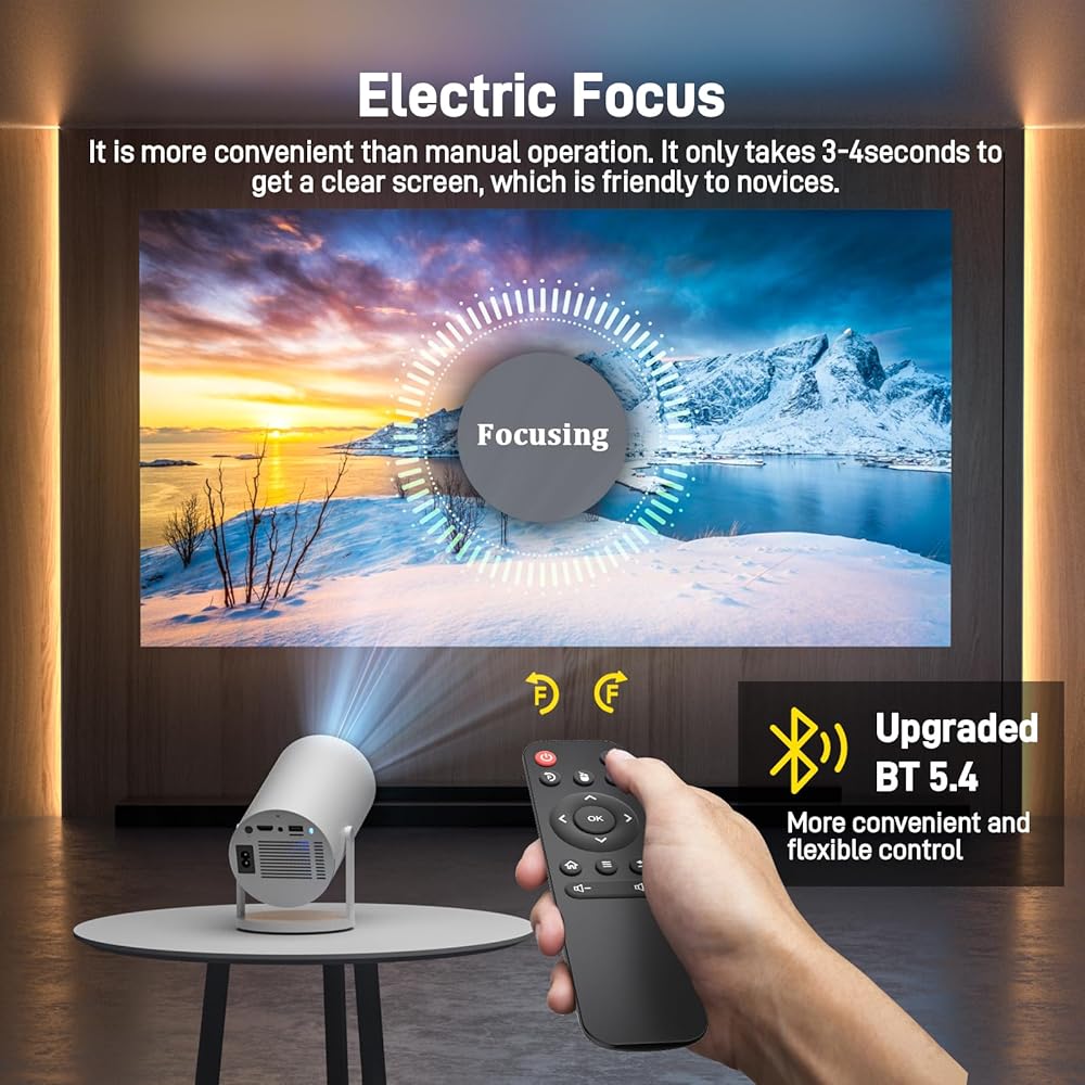 【جودة صورة عالية الوضوح وتجربة غامرة】مع 200 ANSI، والقدرة على فك التشفير 4K، ودقة 1280x720P، وتجربة شاشة 150 بوصة. يقدم جهاز العرض الذكي هذا صورًا واقعية ومفصلة بدقة بألوان نابضة بالحياة، مما يغمرك في التجربة. يضمن تصحيح الانحراف التلقائي بقاء الصورة محاذاة بشكل جيد دون الحاجة إلى تعديل يدوي. ميزة التركيز الكهربائي تجعل ضبط التركيز أمرًا سهلاً، مما يجعلها مناسبة للمبتدئين.