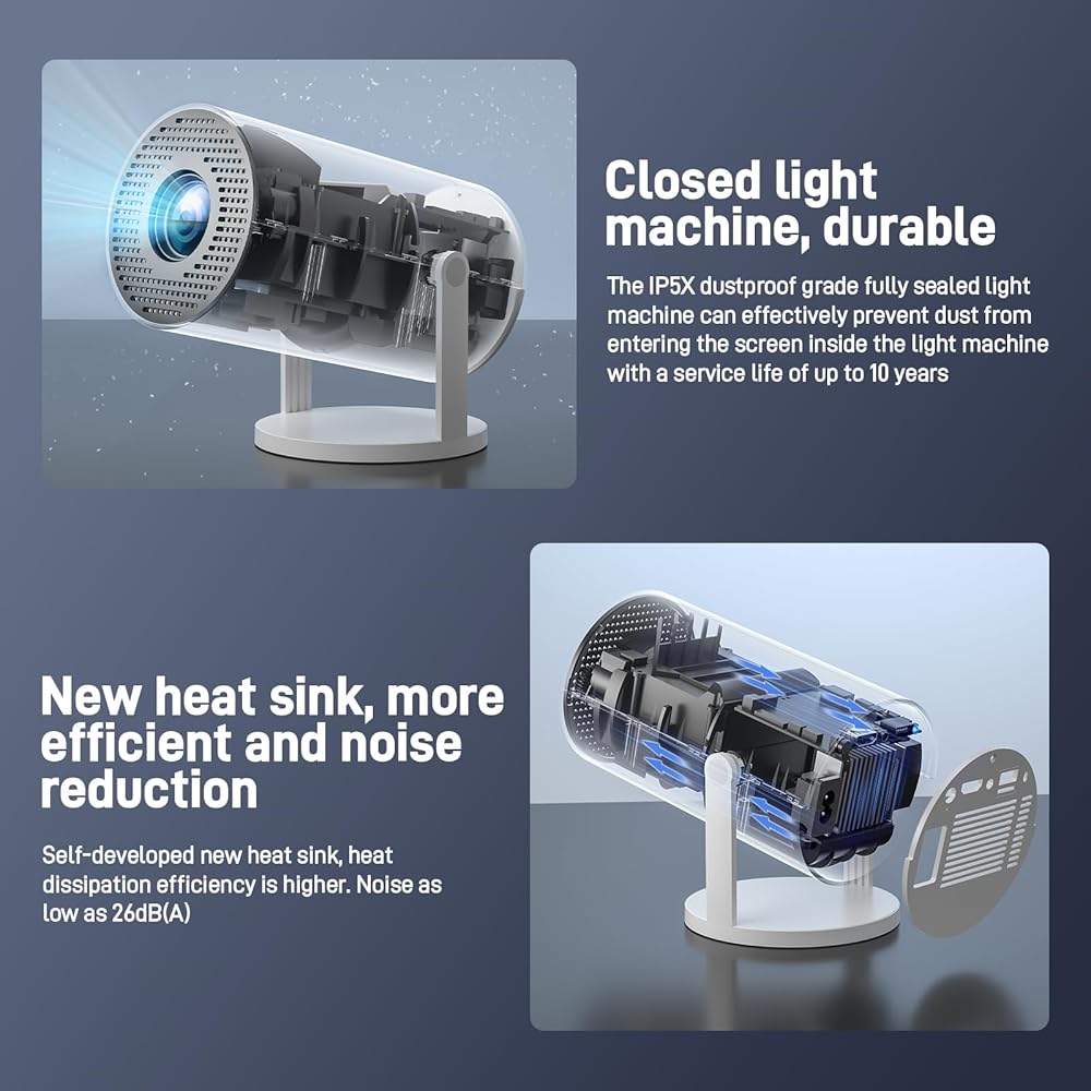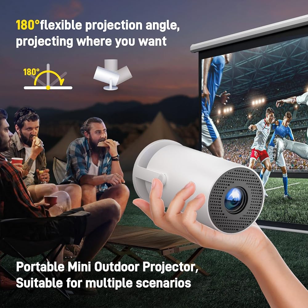 【قابل للدوران 180 درجة، استمتع بالأفلام بحرية】يتميز جهاز العرض الذكي 4K هذا بتصميم قابل للدوران 180 درجة، مما يسمح لك بتعديل اتجاه الإسقاط دون عناء، سواء كان على الحائط أو السقف. فهو يتكيف مع متطلبات المشهد المختلفة، مما يتيح لك الاستمتاع بسهولة بالأفلام من أي موضع.