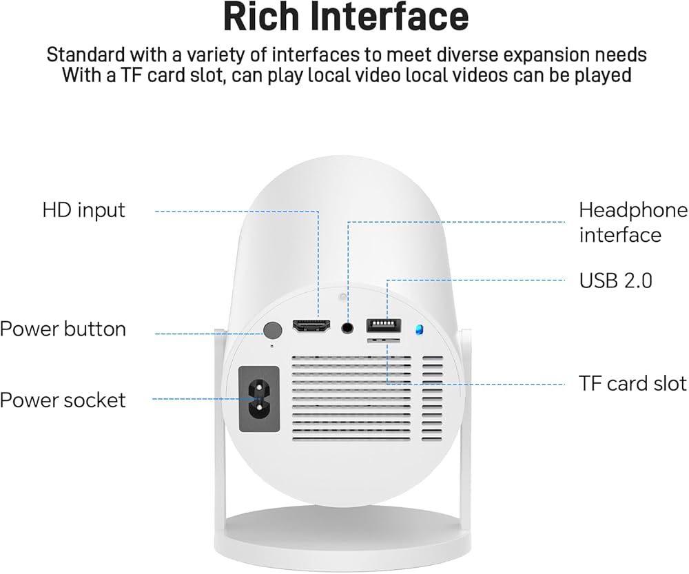 [تشغيل سلس، اتصال سلس] مزود بنظام تشغيل Android 11 واتصال WiFi مدمج ثنائي النطاق 2.4G و5G. يدعم نظام التشغيل Android 11 أكثر من 4000 تطبيق، حتى تتمكن من مشاهدة قدر ما تريد من البث. لا يوفر جهاز العرض هذا المزود بتقنية wifi Bluetooth اتصالاً سريعًا ومستقرًا بالشبكة فحسب، بل يدعم أيضًا اتصال BT 5.4. يتيح لك جهاز العرض الخارجي هذا عرض المحتوى من أجهزة مثل الهواتف الذكية والأجهزة اللوحية دون أي توصيلات كابل، مما يحقق تجربة عرض لاسلكية حقيقية.