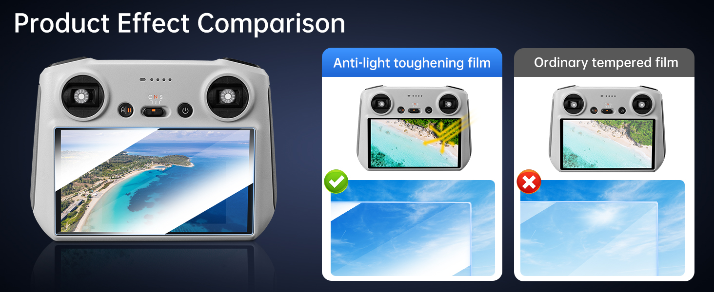 مقاومة فائقة للخدش والتأثير: مصنوعة من مادة زجاجية عالية الصلابة، يمكنها مقاومة الخدوش اليومية والتأثيرات العرضية بشكل فعال، مما يحمي شاشة جهاز التحكم عن بعد من التلف. حتى في الأنشطة الخارجية، يمكنه توفير حماية موثوقة لجهاز التحكم عن بعد الخاص بك