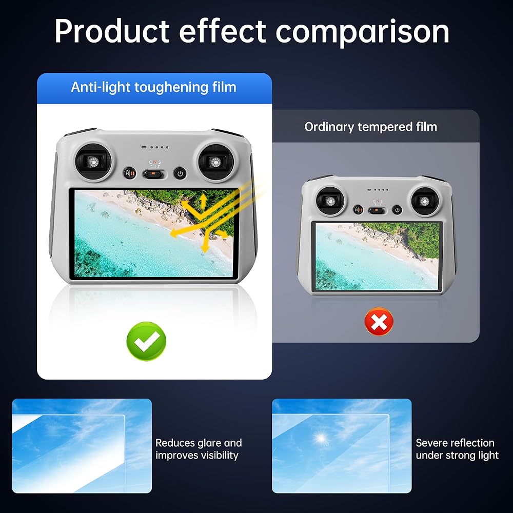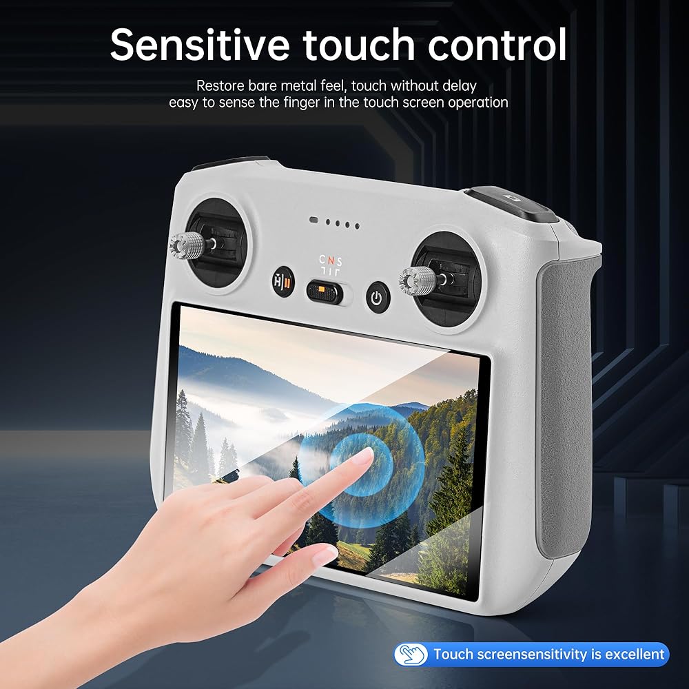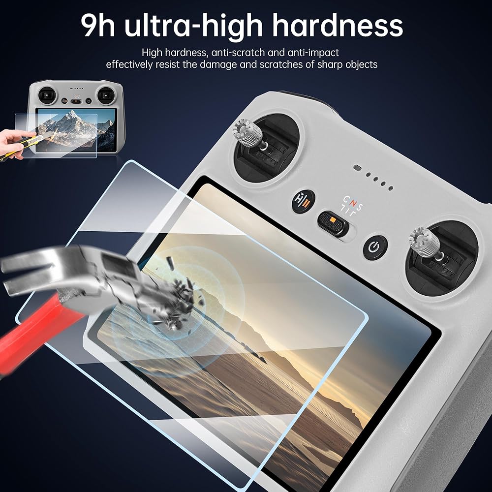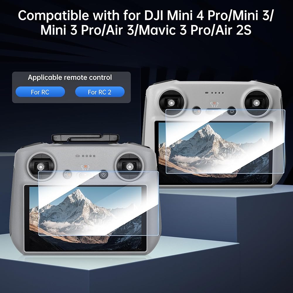 واقي شاشة من الزجاج المقوى عالي الدقة: هذا المنتج مصنوع من زجاج مقسى عالي الدقة ومخصص خصيصًا لأجهزة التحكم عن بعد DJI Mini 4 Pro/Mini 3/Mini 3 Pro/Air 3/Mavic 3 Pro/Air 2S RC/RC 2. فهو يوفر وضوحًا وحساسية لا مثيل لهما لضمان عدم إزعاج تجربة رحلتك بأي شكل من الأشكال