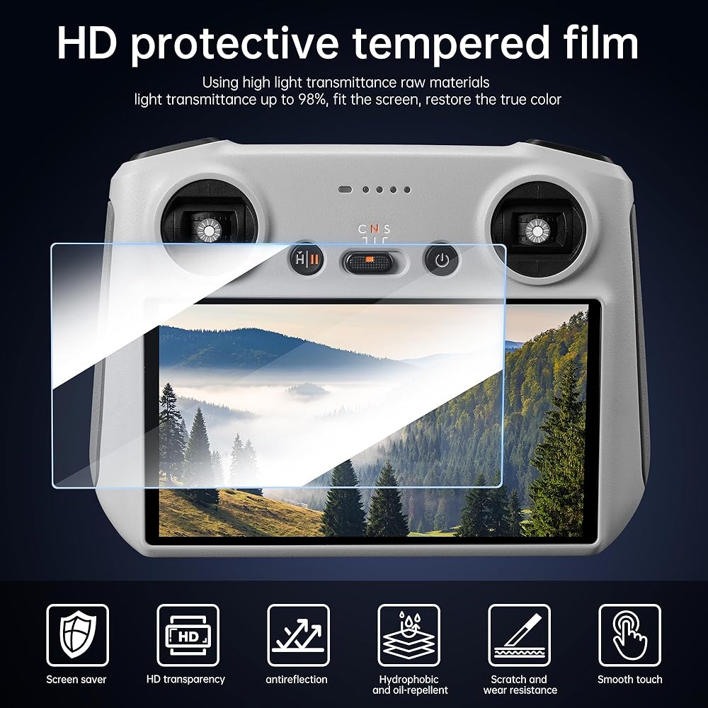 غشاء واقي شاشة من الزجاج المقوى عالي الدقة متوافق مع ملحقات جهاز التحكم عن بعد SPECTA/DJI Mini 4 Pro/Mini 3/Mini 3 Pro/Air 3/Mavic 3 Pro/Air 2S RC/RC 2 (3 عبوات)