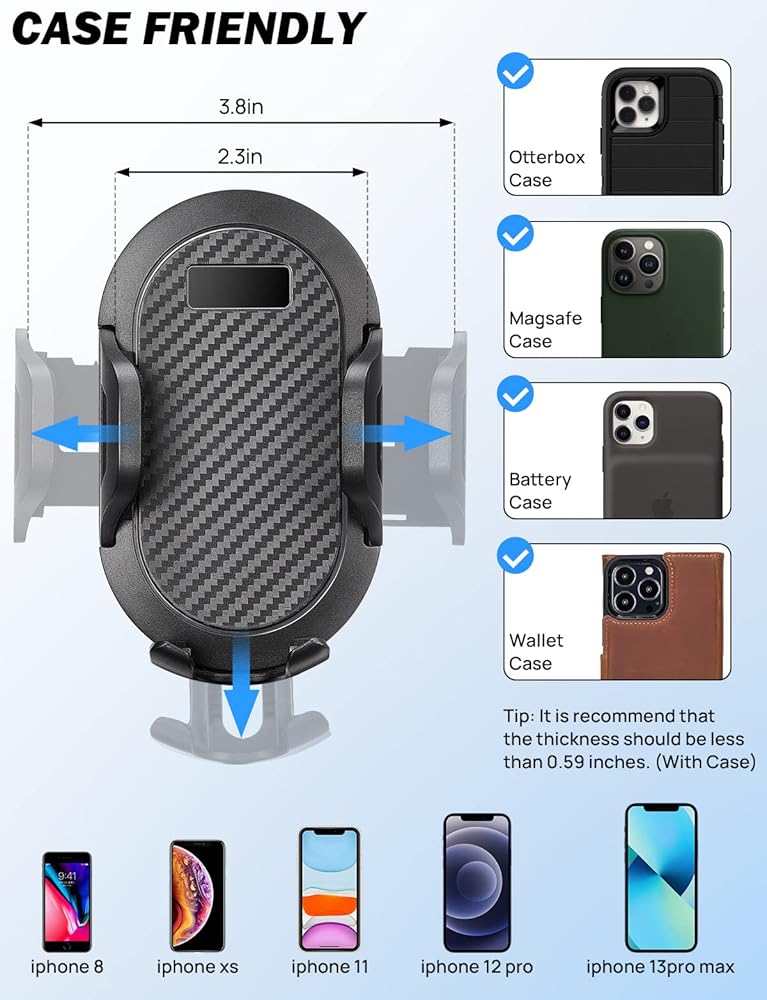 • 【توافق لطيف】: حامل هاتف السيارة مثالي للهواتف الذكية حتى 7 بوصات، متوافق مع iPhone 14 Pro Max / 14 Plus /14/ 13 / 12/ X/ Xs/ 8 plus/ 8/ 7 plus/ 7/ 6s plus وسامسونج جالاكسي S10/ S10e/ S9/ S8 والمزيد. إنه قوي بشكل استثنائي لحمل هاتفك بإحكام