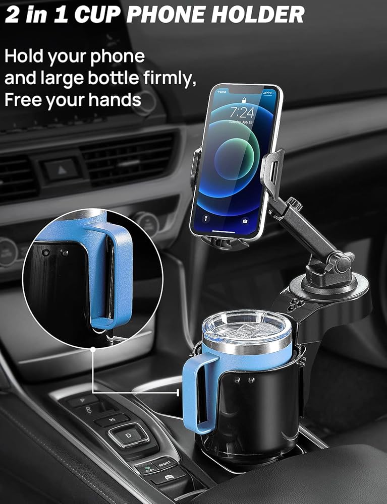 • 【مثالي للهاتف والزجاجات】: مستوحى من حامل هاتف السيارة الأصلي، لا يمكنك فقط وضع الهاتف الخلوي على حامل الهاتف الجديد الخاص بنا، ولكن أيضًا الزجاجة الكبيرة في حامل الأكواب، لا مزيد من المواقف المحرجة عند البحث عن الهاتف الخلوي والأكواب.