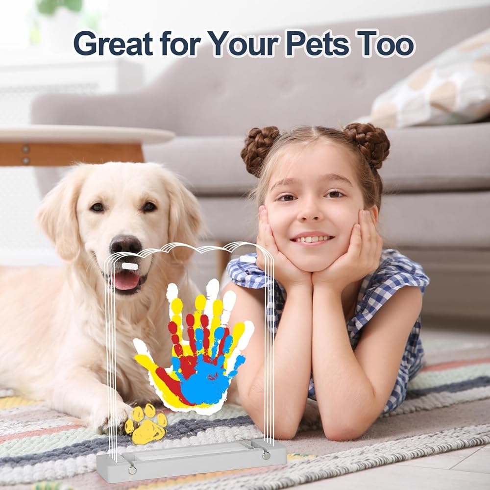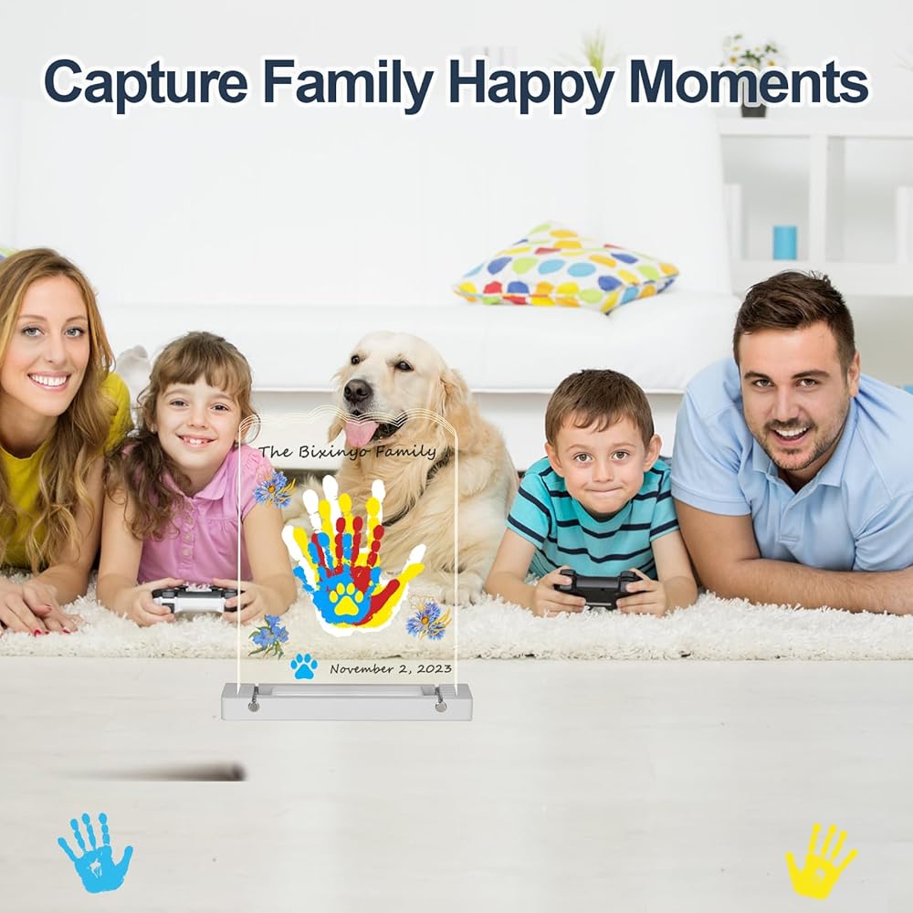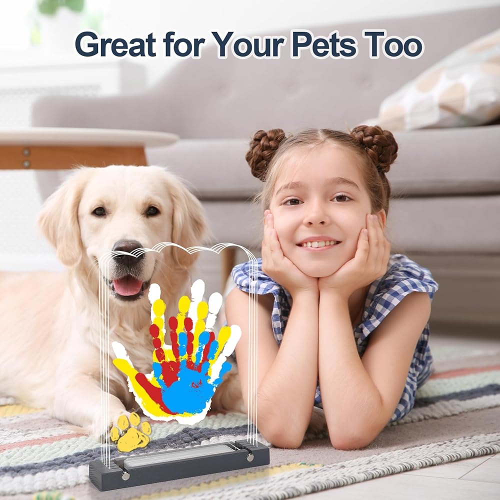 مجموعة طباعة يدوية عائلية - صُنعت في رحلة لصناعة تذكارات شخصية مع عائلتك. شاهد رحلة طفلك وحيوانك الأليف المحبوب. اجمع بين أقدامهم وبصمات أيديهم مع الأسماء أو البركات. نقدم لكم مجموعة بصمات اليد التي تقرب كل فرد من أفراد الأسرة وتحفر ذكريات دائمة