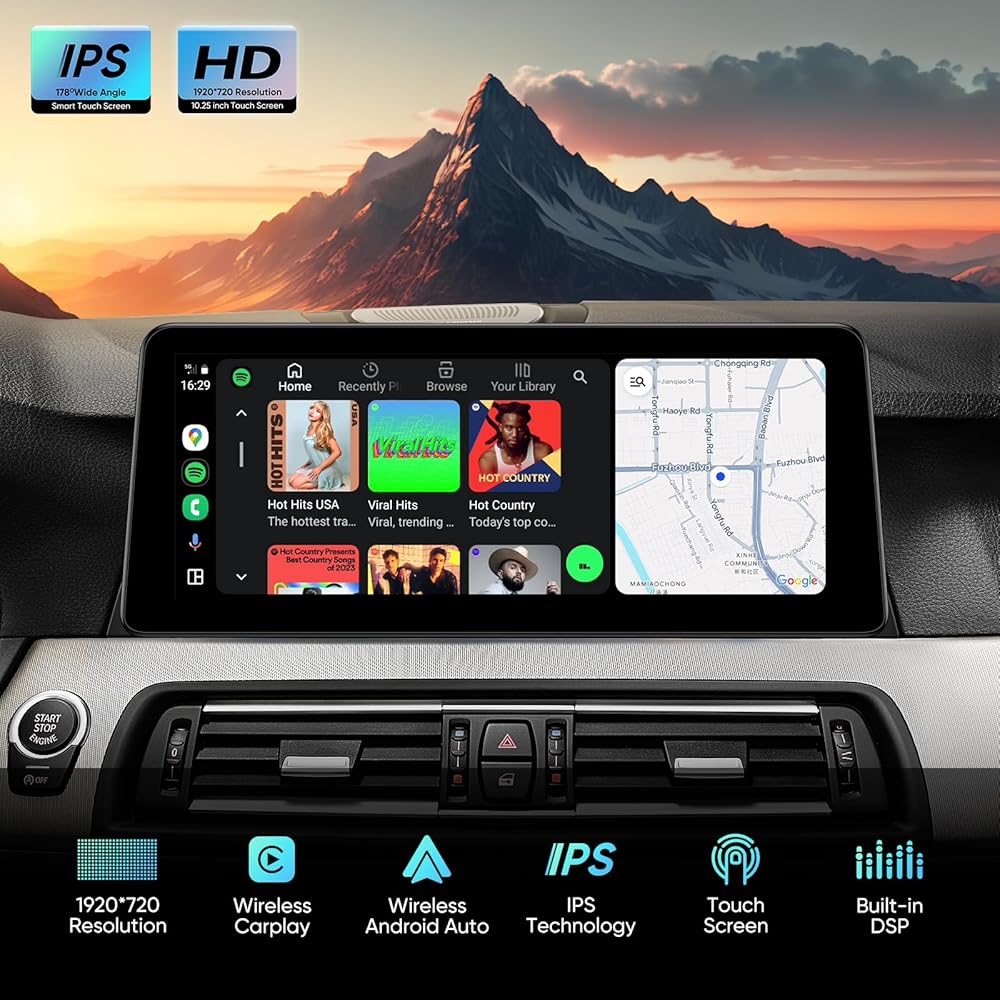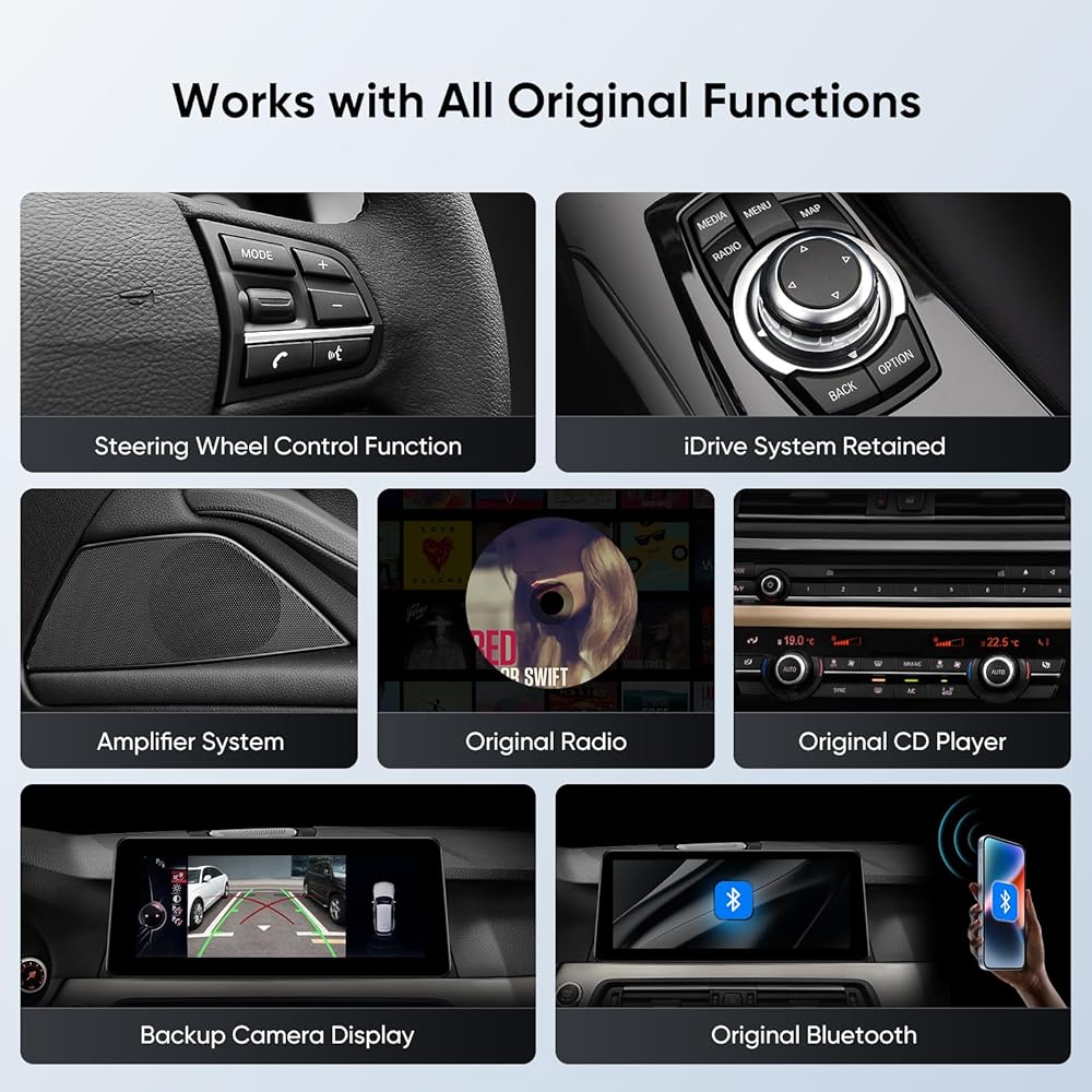 【تكامل مثالي】مصمم خصيصًا لسيارات BMW. لا تتطابق هذه الوحدات مع لوحة القيادة الأصلية للحصول على مظهر متكامل تمامًا فحسب، بل توفر أقوى تجربة لاسلكية CarPlay / Android Auto وشاشة تعمل باللمس لسيارتك BMW، مما يجعل لوحة القيادة أكثر ذكاءً من أي وقت مضى.