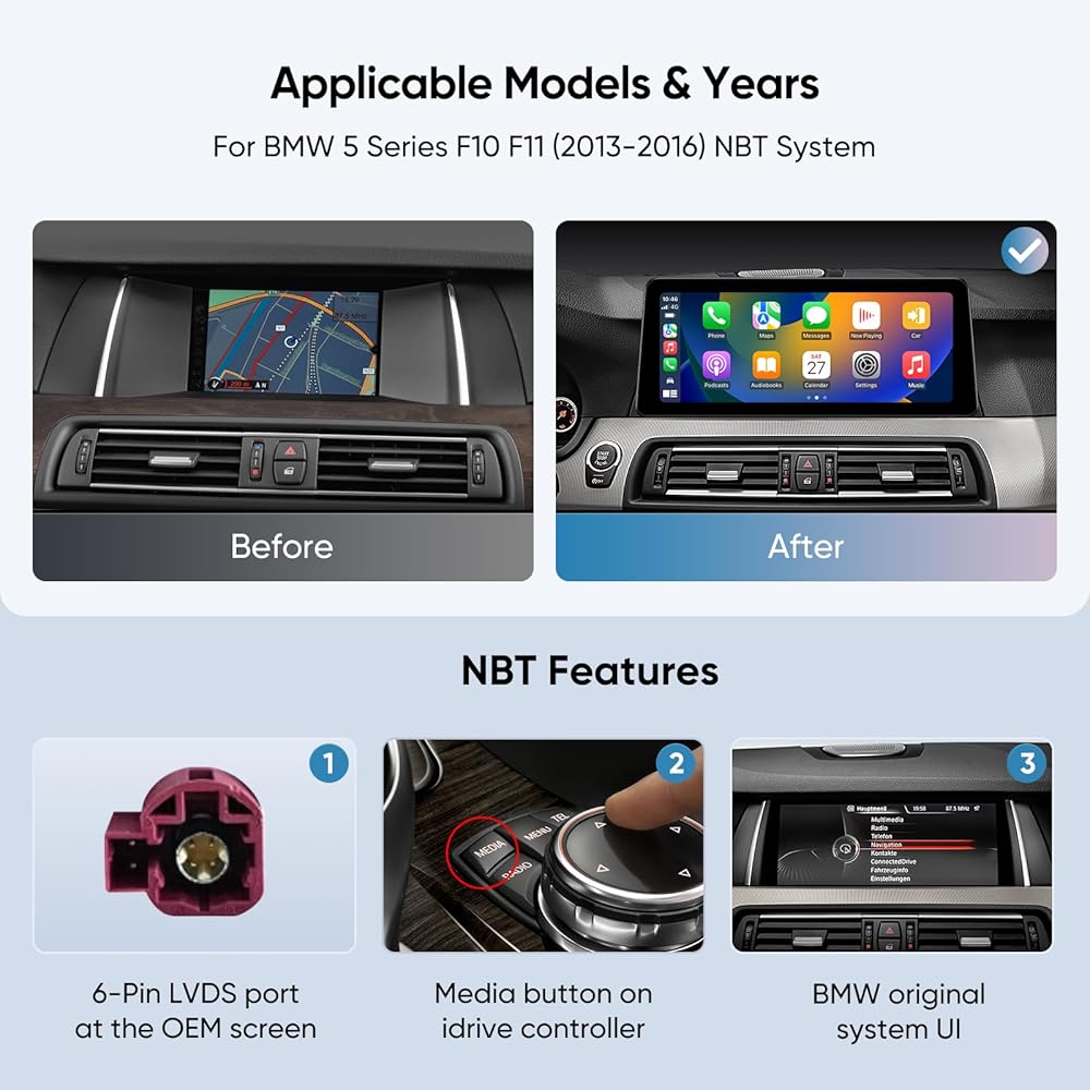 【الموديلات المتوافقة والسنوات】مصممة حصريًا لسيارة BMW 5 Series F10 F11 (2013-2016) مع نظام NBT-مركبات القيادة اليسرى.