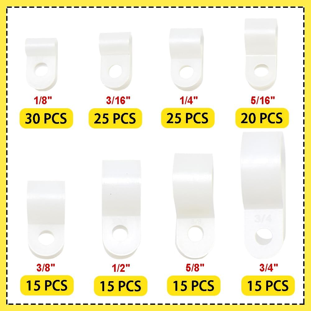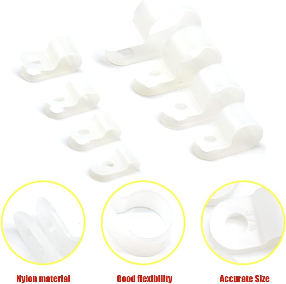• 【Application】R type cable clamp can be used to secure rope lights, cables, wires and power cords for indoor and outdoor assortment. Such as homes and kitchens, decks, stairs, patios, fences, large events and parties with hanging LED rope lights and Christmas tree light strings etc.