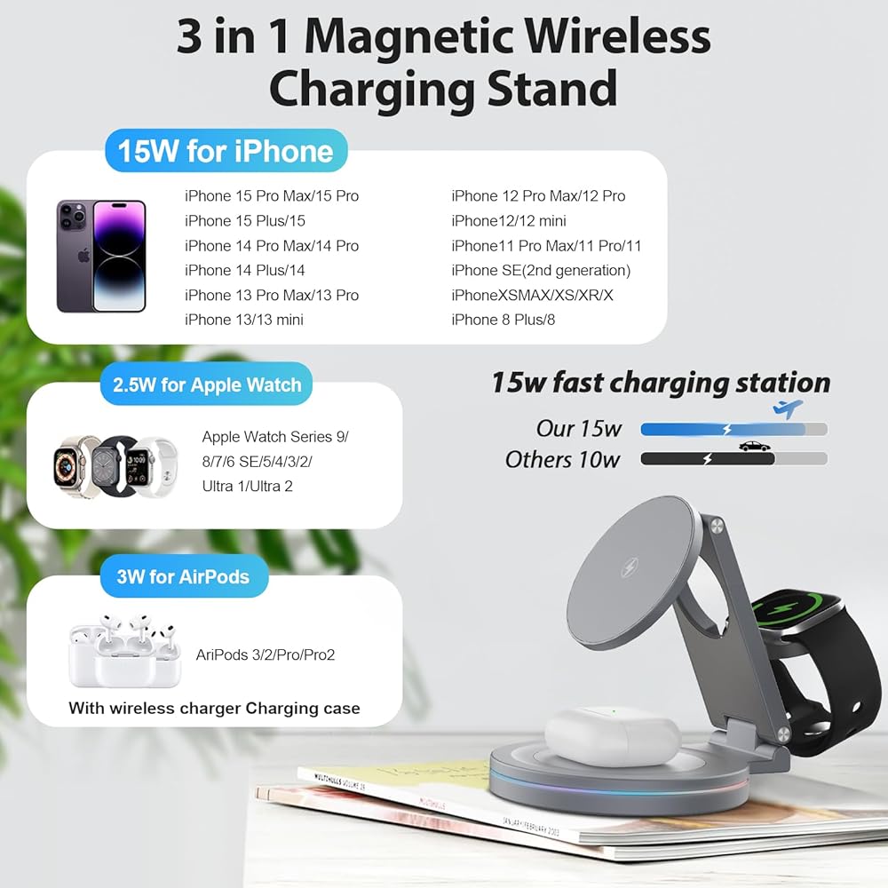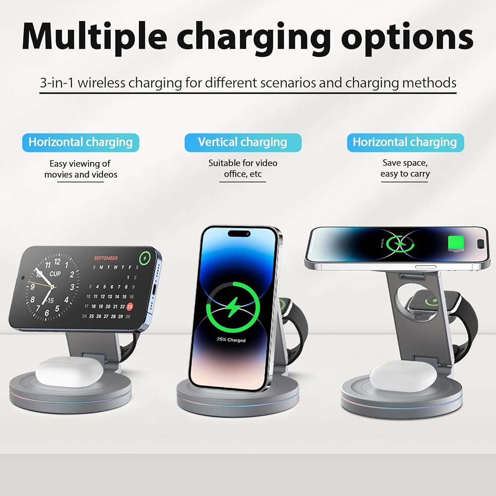 【محطة شحن Kytuwy 3 في 1】يمكن للشاحن اللاسلكي شحن iPhone وiWatch وAirpods في نفس الوقت. بفضل الشريحة الحثية الذكية وتقنية الشحن اللاسلكي، فإنه يوفر لك تجربة شحن مريحة وعملية، بينما يمكنك أن تقول وداعًا للكابلات والأسلاك المتشابكة والفوضوية.
