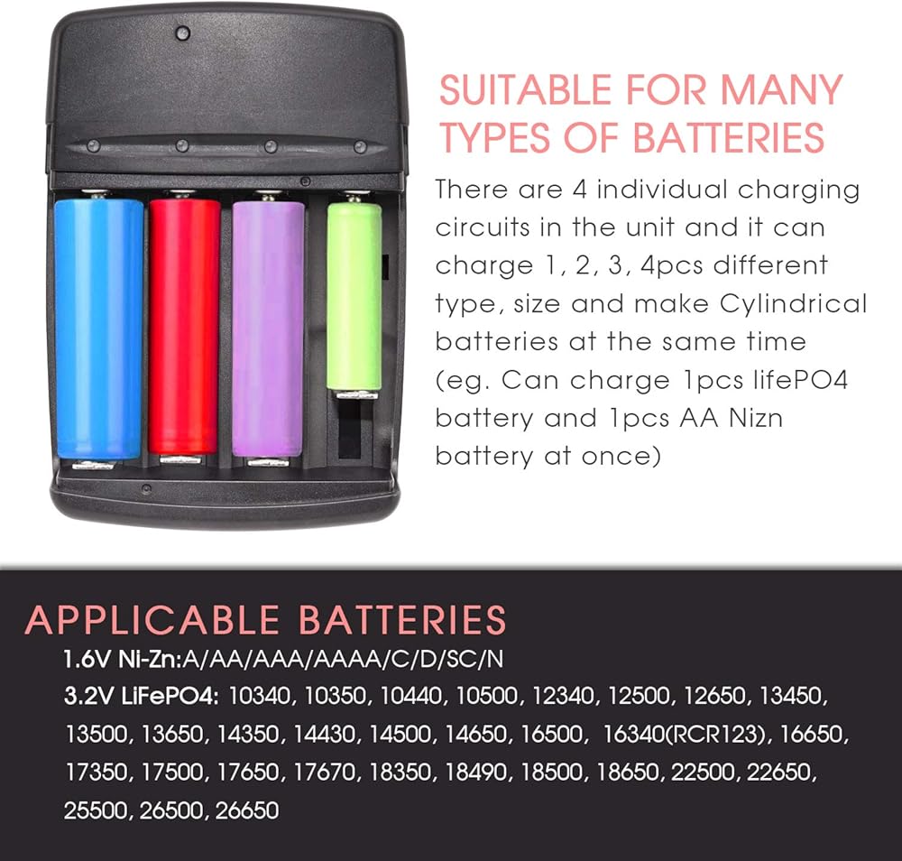 -Compatible with 1.2V Ni-Zn(A, AA, AAA, AAAA, C, D, SC, N) /3.2V LiFePO4 battery