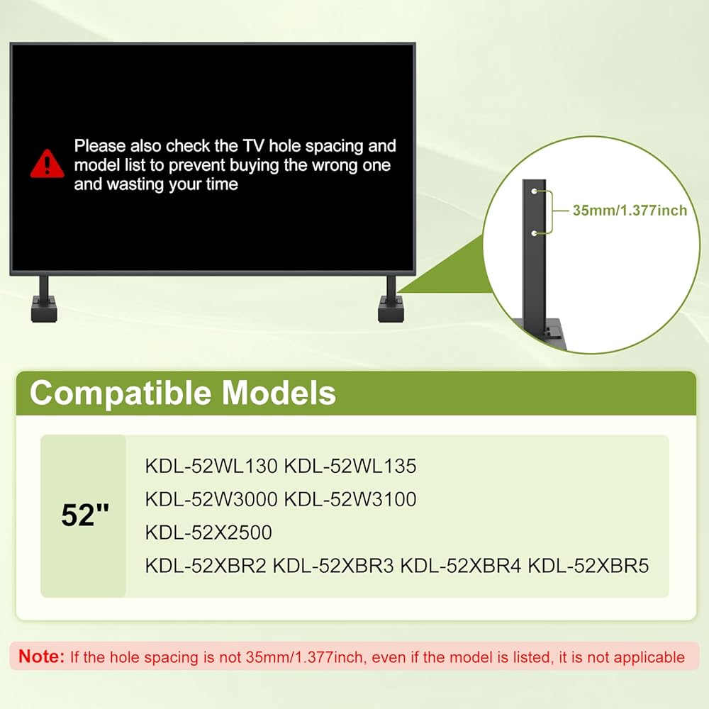 أرجل تلفزيون معدنية لتلفزيون Sony Bravia لتلفزيون Sony KDL-52WL135 KDL-52W3000 KDL-52X2500 KDL-52XBR3، تناسب فقط مسافة فتحة التلفزيون 35 مم/1.377 بوصة من المركز إلى المركز، يرجى قياس المسافة بين الفتحات