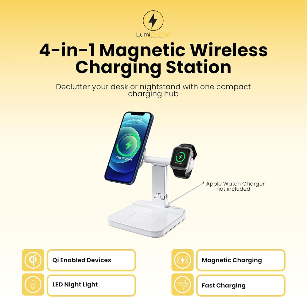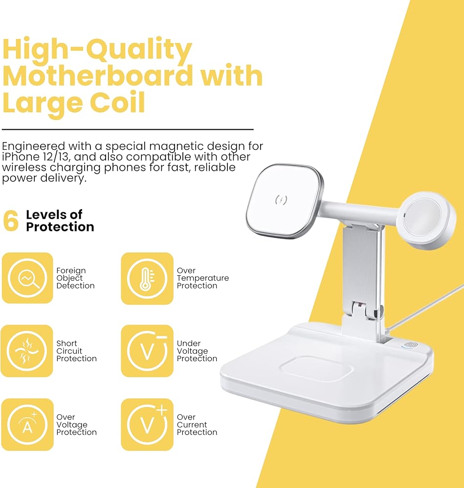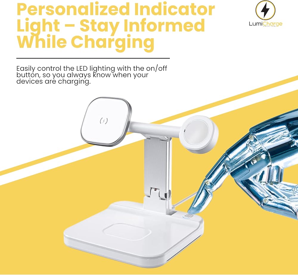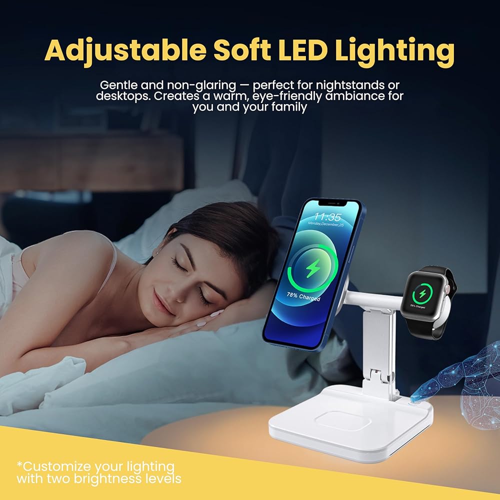 راحة خالية من الفوضى - احتفظ بهاتفك وساعتك وسماعات الأذن مشحونة في مكان واحد مرتب باستخدام محطة الشحن اللاسلكية الكل في واحد، مما يقلل من فوضى الكابلات.