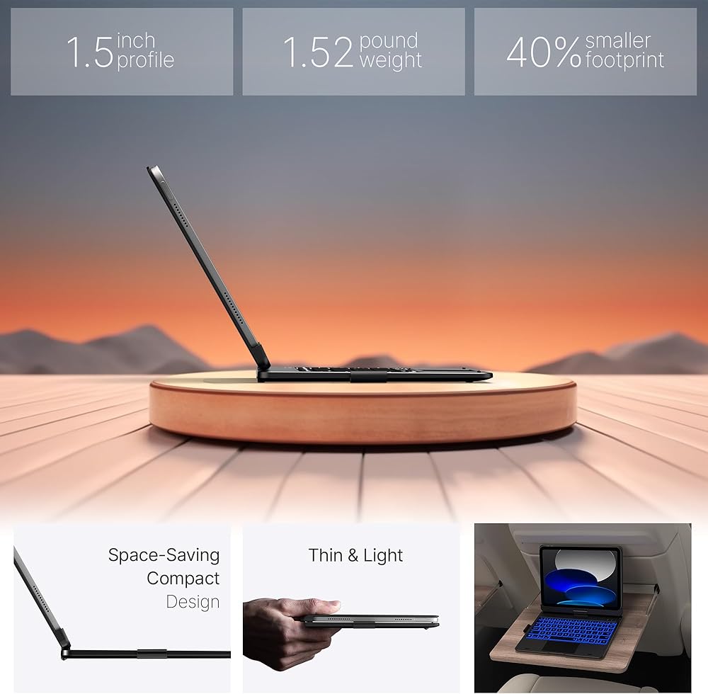 • Illuminated Typing: Experience quiet and precise typing with ergonomic scissor-switch keys. The 11-color RGB backlit keyboard with a full row of iPadOS shortcuts provides a comfortable typing experience, day or night.